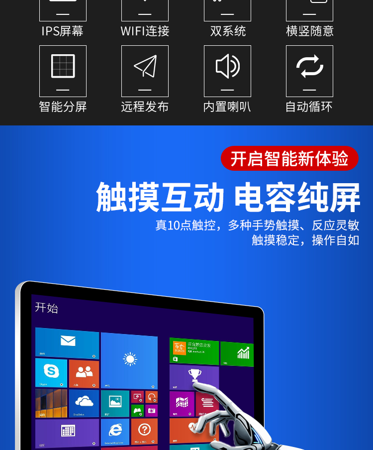 名稱:壁掛式小尺寸觸摸屏一體機(jī)(10.1-27寸)